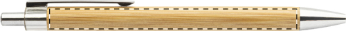 Penna a sfera in bambù con parte superiore trasparente e finiture cromate.