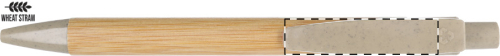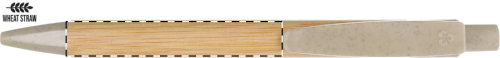 Penna a sfera di bambù con clip e puntale in plastica ecologica ricavata da paglia di grano. Con refill blu.