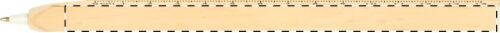 Penna a sfera in legno con corpo squadrato e decorazione righello da 14cm su un lato. Con refill blu.
