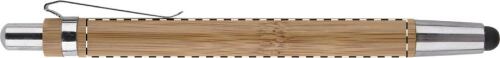 Set penne in bambù, composto da penna a sfera capacitiva con refill blu e matita meccanica da 0,7 mm. In scatola regalo.