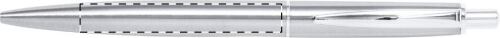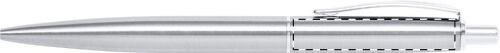 Penna a sfera in acciaio riciclato con refill blu e confezione regalo in sughero naturale.
