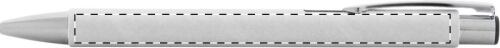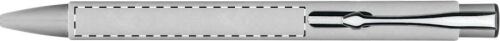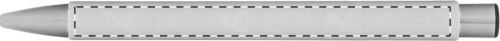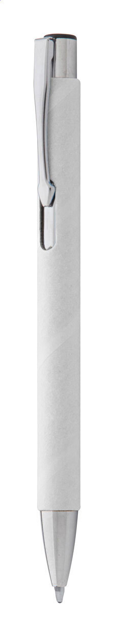 Penna a sfera in carta riciclata con parti in metallo e refill blu.