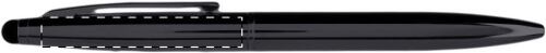 Penna a sfera in metallo con refill blu, finitura lucida e gommino capacitivo.