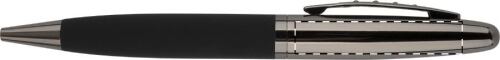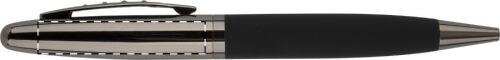 Elegante set di penne composto da una penna a sfera in metallo ed una penna roller con corpo gommato. Fornito in confezione regalo e refill blu.