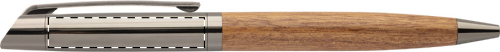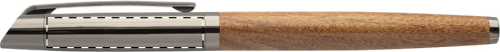 Elegante set composto da una penna a sfera e da una penna roller in metallo con fusto in legno, dettagli in metallo lucido e refill blu. Set fornito in scatola regalo bicolore. Prodotto a marchio André Philippe.
