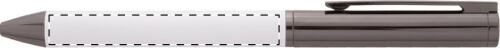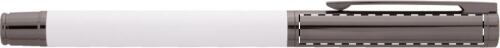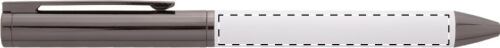 Elegante set di penne in metallo composto da una penna a sfera ed una penna roller in confezione regalo di cartoncino nero. Con refill blu.
