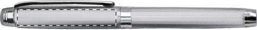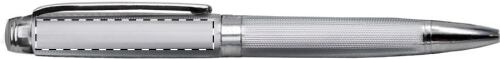 Elegante set composto da una penna a sfera ed una penna roller in metallo con fusto decorato. In confezione regalo nera e refill blu. Prodotto a marchio André Philippe.