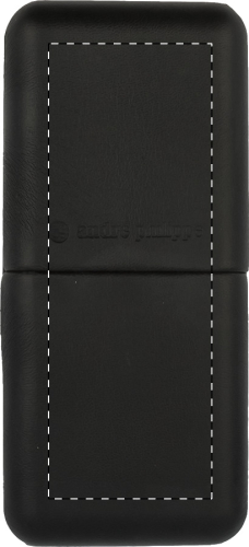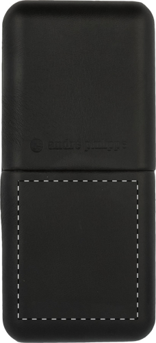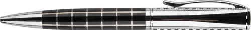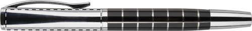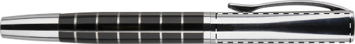 Elegante set di penne a sfera e roller con parti cromate lucide e decorazione sul fusto. Confezione regalo in PU e refill blu. Marchio: André Philippe.