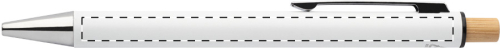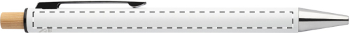 Set in alluminio riciclato composto da penna a sfera e da una matita meccanica, pulsanti in bambù, refill blu e mina da 0,7 mm. Confezione in scatola di cartoncino kraft.