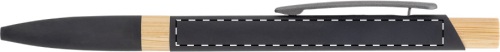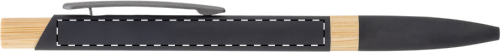 Set regalo da 2 pezzi in confezione regalo di cartoncino kraft. Il set comprende una penna a sfera in alluminio riciclato con dettagli in bambù, finitura gommata e refill blu, un portachiavi in bambù con piastra in acciaio riciclato con finitura gommata. Entrambi gli articoli presentano un rivestimento speciale per l'incisione laser a specchio.