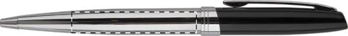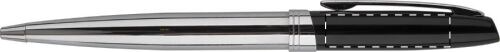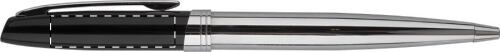 Set penna a sfera in metallo e penna roller con parte superiore in colore nero laccato e corpo cromato lucido e clip. In confezione regalo, con refill blu.