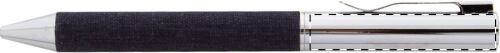 Penna a sfera in metallo con meccanismo a rotazione e fusto rivestito in poliestere RPET. Fornita in astuccio in poliestere RPET coordinato. Con refill blu.