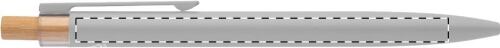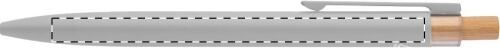 Penna a sfera in alluminio riciclato con pulsante in bambù e refill blu.