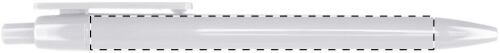 Penna a sfera in plastica con refill blu. Con clip speciale per la stampa UV LED oppure con resina epossidica. L'inserto bianco della clip viene consegnato separatamente nel caso in cui non venga personalizzato.