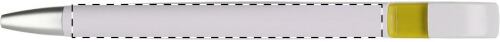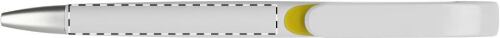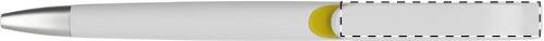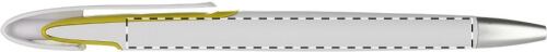 Penna a sfera in plastica bianca particolari colorati e puntale cromato. Fornita con refill blu.