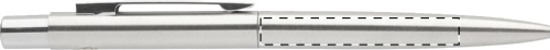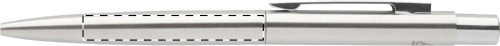 Penna a sfera in acciaio riciclato con dettagli cromati e refill blu.