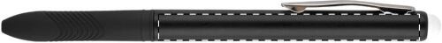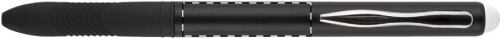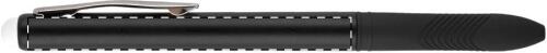 Penna a sfera in plastica con gommino capacitivo per touch screen ed impugnatura in gomma. Fornita con refill nero.