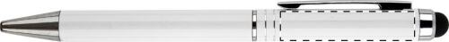Penna a sfera in alluminio con gommino capacitivo e refill blu.