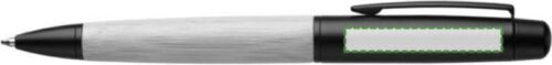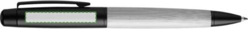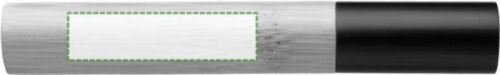 Penna a sfera con fusto in bambù, con punta, clip e impugnatura in metallo, finitura cromata o nera, ricarica in metallo blu Parker, meccanismo a rotazione, involucro cilindrico in bambù ed alluminio a tema colore, confezionata singolarmente in una scatola in cartone avana con disegno ad 1 colore