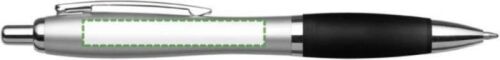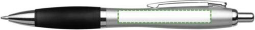 Penna a sfera in ABS, corpo argentato, impugnatura in gomma colorata, refill blu