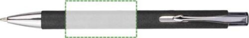 Penna a sfera in cartone riciclato con dettagli cromati, punta e pulsante in plastica, clip in metallo, lunghezza di scrittura di circa 800 metri, refill nero
