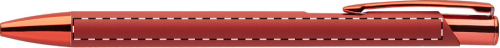 Penna a sfera in alluminio riciclato con corpo gommato, parti colorate con finitura metallica lucida e refill blu. Lo speciale rivestimento permette l'incisione a specchio in colore coordinato delle parti metalliche.