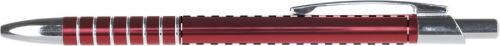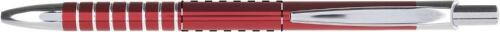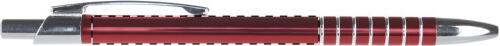 Penna a sfera in alluminio con decorazione incisa ad anelli, clip e puntale cromati, refill blu.