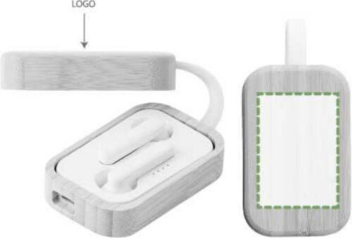 Auricolari in ABS con tecnologia connessione wireless versione 5.0, custodia in bambù, include cavo di ricarica