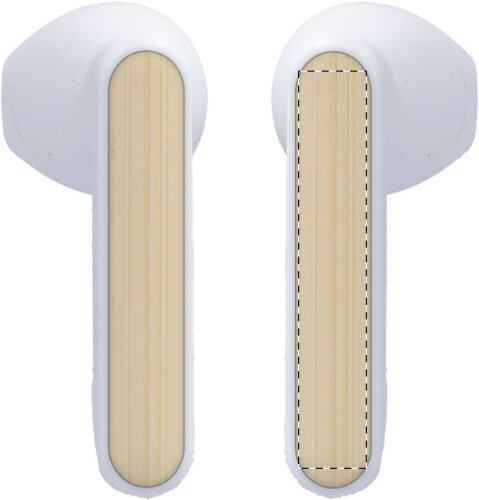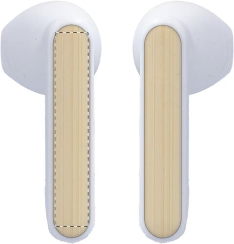 Auricolari bluetooth wireless con inserto in bambù e funzione di chiamata in vivavoce, con custodia in plastica ABS, inserto in bambù e caricatore rapido wireless integrato (10W). Forniti con cavo di ricarica USB.