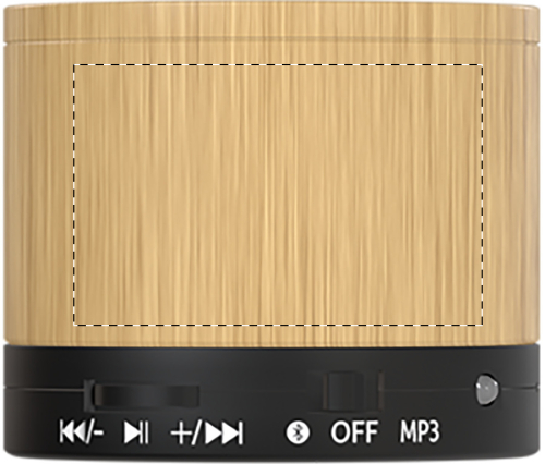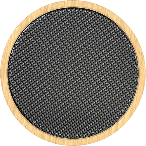 Cassa wireless in ABS riciclato e bambù con rete metallica e batteria ricaricabile (300 mAh). Con funzione di chiamata in vivavoce e riproduzione di MP3 su micro SD. Cavo di ricarica USB incluso
