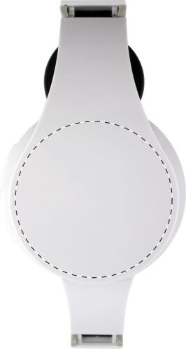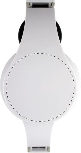 Cuffie wireless pieghevoli in plastica con batteria ricaricabile integrata. Con funzioni di chiamata in vivavoce e riproduzione di MP3 su micro SD. Cavi di ricarica USB e jack audio da 3,5 mm inclusi.