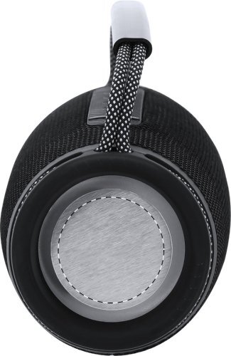 Cassa bluetooth rivestita in tessuto di poliestere con luce LED multicolore (7 modalità di illuminazione), impugnatura rinforzata, 2 altoparlanti, funzione di chiamata in vivavoce, lettore di schede micro SD e batteria ricaricabile integrata (1200 mAh). Cavo di ricarica USB incluso.