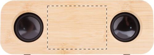 Altoparlante wireless con involucro in ABS riciclato e bambù, 2 altoparlanti e batteria ricaricabile integrata. Con funzioni di chiamata in vivavoce e radio FM. Cavo di ricarica USB incluso.