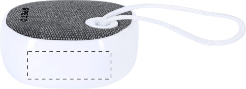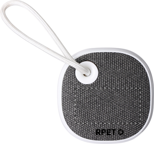 Altoparlante wireless in plastica ABS riciclata con lato in poliestere RPET, caricatore solare incorporato, tracolla e batteria ricaricabile (300 mAh). Incluso cavo di ricarica USB.