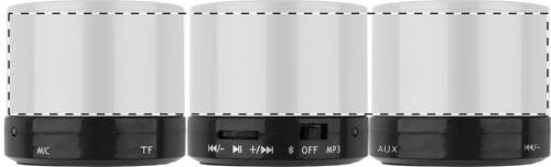 Altoparlante wireless con alloggiamento in metallo. Con radio, lettore MP3, funzione di chiamata in vivavoce e batteria ricaricabile integrata. Include caricatore USB e cavo aux-in.