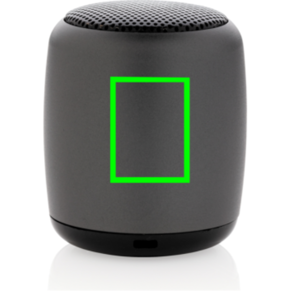 Speaker wireless tascabile da 3W con una sorprendente potenza sonora. Realizzato in alluminio resistente. Ha una batteria da 180 mAh che consente una riproduzione fino a 3 ore con una singola carica e una distanza operativa di 10 m con bluetooth BT5.0. E' completo di cavo di ricarica in materiale TPE privo di PVC.