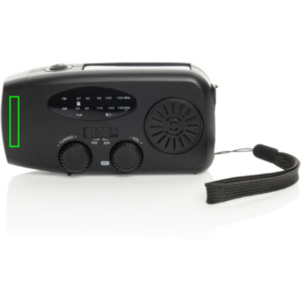 Sii sempre pronto ad affrontare qualsiasi situazione con RescueWave, una radio di emergenza versatile progettata per mantenerti connesso e carico. Dotata di radio AM/FM, pannello solare, torcia integrata da 1W, output USB e input type C, questo dispositivo compatto ti garantisce di essere sempre pronto per gli imprevisti. Con una batteria integrata da 1800 mAh, può ricaricare il tuo telefono, fornendo energia preziosa quando ne hai più bisogno. Un solo minuto di rotazione della manovella garantisce 5 minuti di radio o 30 minuti di torcia, rendendolo uno strumento essenziale per le emergenze. Quando è completamente carica, la radio funziona fino a 15 ore in modalità radio o 8 ore in modalità torcia. Realizzata con materiali riciclati certificati RCS. RCS (Recycled Claim Standard) è uno standard che verifica il contenuto riciclato di un prodotto lungo tutta la catena di approvvigionamento. Contenuto totale riciclato: 38% in base al peso totale dell'articolo. Senza PVC.
