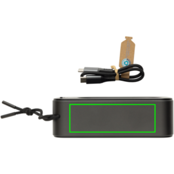 Lo speaker da 10W Swiss Peak in alluminio riciclato RCS offre un audio potente e di alta qualità con bassi profondi e risonanti grazie al subwoofer integrato e ai due altoparlanti da 10W. Progettato per prestazioni audio eccezionali, è dotato di BT 5.3 per una connettività senza interruzioni e per un abbinamento automatico con i tuoi dispositivi. Alimentato da una batteria ai polimeri di litio da 1200 mAh, offre fino a 5 ore di riproduzione al 50% del volume e si ricarica completamente in sole 2,5 ore utilizzando il cavo da type C a type C incluso. Altre caratteristiche sono una porta type C e una porta AUX. E' realizzato in alluminio riciclato certificato RCS. RCS (Recycled Claim Standard) è uno standard per la verifica del contenuto riciclato di un prodotto lungo tutta la catena di fornitura. E' privo di PVC e confezionato in una scatola regalo certificata FSC. Include una tracolla in rPET.