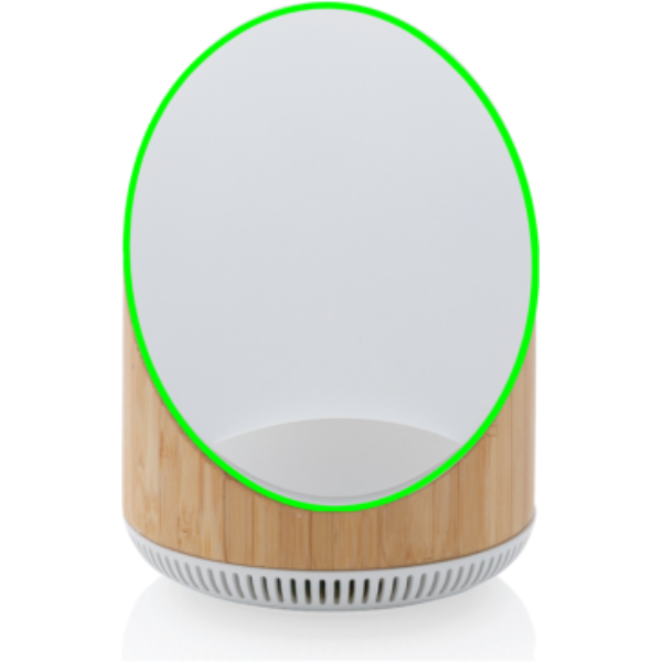 Elegante speaker in bambù e ABS con caricabatterie wireless veloce da 15 W integrato. Il caricabatterie wireless ha due bobine per supportare sia la ricarica verticale che quella orizzontale. Lo speaker wireless da 5W ha un suono pulito. La batteria da 2200 mAh ha un'autonomia di circa 10 ore. Si consiglia di utilizzare la funzione di ricarica wireless quando l'articolo è collegato a una fonte di alimentazione. Distanza operativa fino a 10 metri. Include cavo di ricarica micro USB da 120 cm in TPE senza PVC. Necessita di input da 9V/2A.