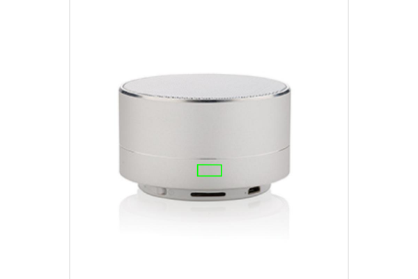 Speaker wireless in alluminio con cassa da 3W e batteria al litio da 300 mAh. Autonomia a piena carica di 4 ore e portata di 10 m. Include luce blu sul fondo. Include funzione di risposta alle chiamate entranti.