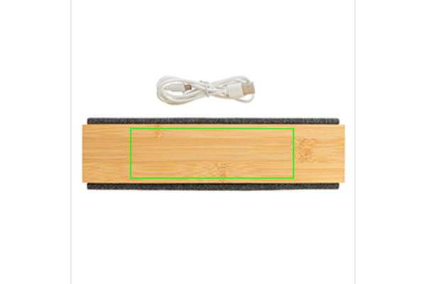 Lussuoso speaker da 10W con suono chiaro e bassi potenti. E' realizzato in bambù naturale e tessuto., Una combinazione che sta bene ovunque: in casa, in ufficio o ovunque tu voglia ascoltare la tua musica preferita. Lo speaker viene fornito con BT 5.0 per un funzionamento facile e regolare fino a 10 metri e un basso consumo energetico. La batteria da 2.000 mAh assicura un'autonomia fino a 6 ore e può essere ricaricata completamente in 2 ore. Con funzione di risposta alle chiamate e microfono. Compreso cavo di ricarica in materiale TPE senza PVC. Confezionato in lussuosa confezione regalo.