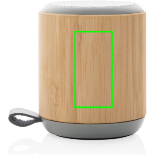 Speaker 3W in bambù con batteria al litio integrata da 300 mAh. Autonomia di circa 3 ore con una singola carica e una distanza operativa di 10 m grazie alla tecnologia BT 5.0. Realizzato in bambù naturale e tessuto.