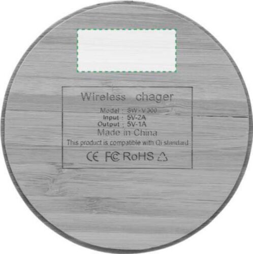 Caricabatterie wireless in bambù per smartphone, input 5V-2A, 5V-1A output 5W, indicatori in LED, include cavo USB / micro USB, adatto per la maggior parte dei device in commercio.