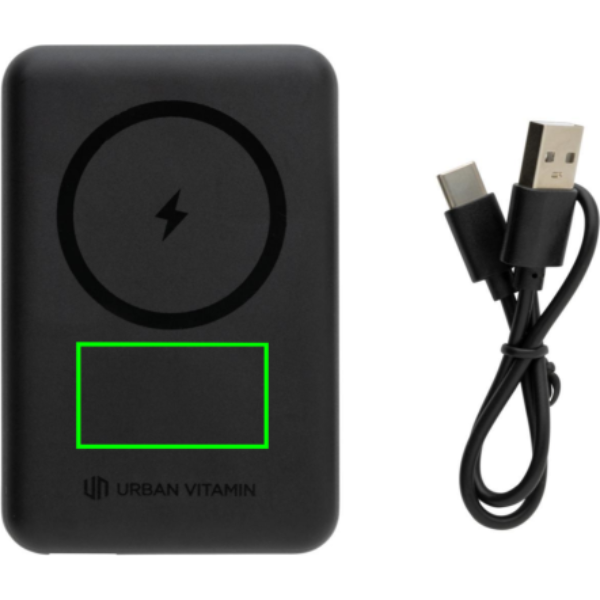 Ricarica il tuo telefono con questa powerbank a ricarica rapida. Sottile e compatta ha un caricabatterie magnetico wireless veloce da 10W integrato. Integra un versatile cavalletto pieghevole che mantiene il telefono in posizione verticale per un comodo angolo di visione. Grazie alla porta PD ultra veloce type C da 20W, la powerbank si ricarica in tempi record. Caricare il telefono fino al 50% richiede solo 30 minuti. La ricarica lenta è qualcosa che appartiene al passato. Include una batteria di classe A da 5000 mAh di lunga durata per caricare tutti i tuoi dispositivi durante i tuoi viaggi e avventure. Realizzato con ABS riciclato certificato RCS (Recycled Claim Standard). Contenuto totale riciclato: 18 % in base al peso totale dell'articolo. La certificazione RCS garantisce una filiera completamente certificata dei materiali riciclati. Senza PVC e in scatola a platica ridotta. USB-A :5V 3.0A,9V 2.0A, 12V 1.5A Type C : 5V 3.0A,9V 2.22A, 12V 1.5A (PD20W).