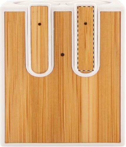 Auricolari stereo true wireless (TWS) con inserto in bambù e funzione di chiamata in vivavoce. In custodia di plastica ABS riciclata con inserto in bambù. Incluso cavo di ricarica USB.