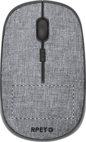 Mouse ottico wireless con struttura rivestita in poliestere RPET. Funziona con 1 batteria AA, non fornita.