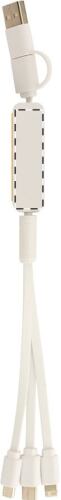 Cavo USB telescopico per caricabatterie in ABS riciclato e bambù. Con connettori micro USB, USB-C e Lightning ed ingressi USB e USB-C.