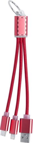 Cavo di ricarica USB in alluminio con connettori micro USB, USB-C e Lightning e portachiavi.