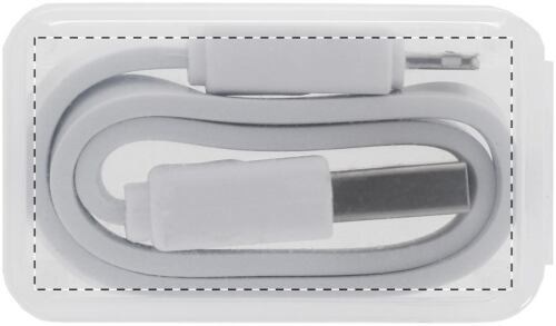 Cavo di ricarica USB con connettori Micro USB e Lightning, in scatola di plastica. Lunghezza: 25 cm.