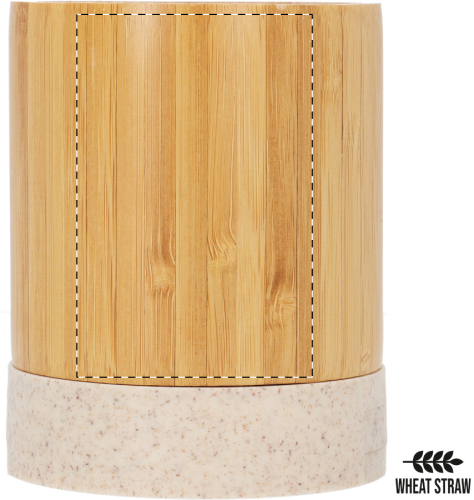 Portapenne multifunzione in bambù e plastica ecologica in paglia di grano. Supporto per cellulare, caricatore wireless (5W) e hub USB a 3 porte (2 porte USB e 1 porta USB-C, USB 2.0). Fornito con cavo di ricarica USB.